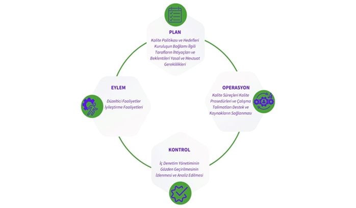 İşletmeler yönetim sistemi kurmaya karar verdiklerinde Planla- Uygula- Kontrol et- Önlem al sürekli iyileştirme modülüyle sistemlerini yönetirler.